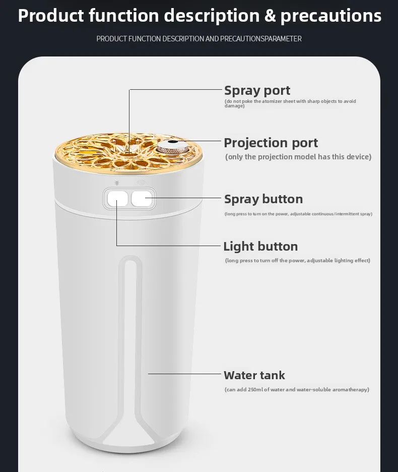Car Aromatherapy Humidifier, Mini Portable Car Air Atomizer with Colorful Lights