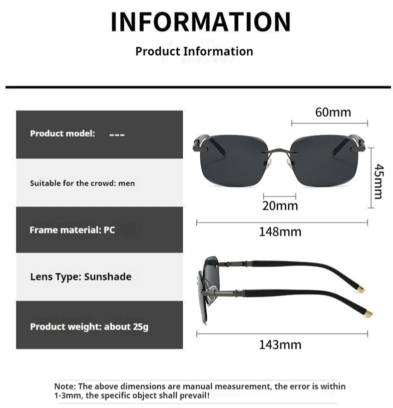 Luxury Rimless Square Sunglasses - Premium UV - Protected Eyewear for Sophisticated Men & Women
